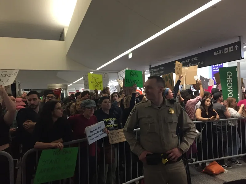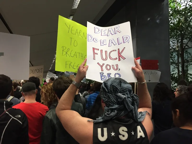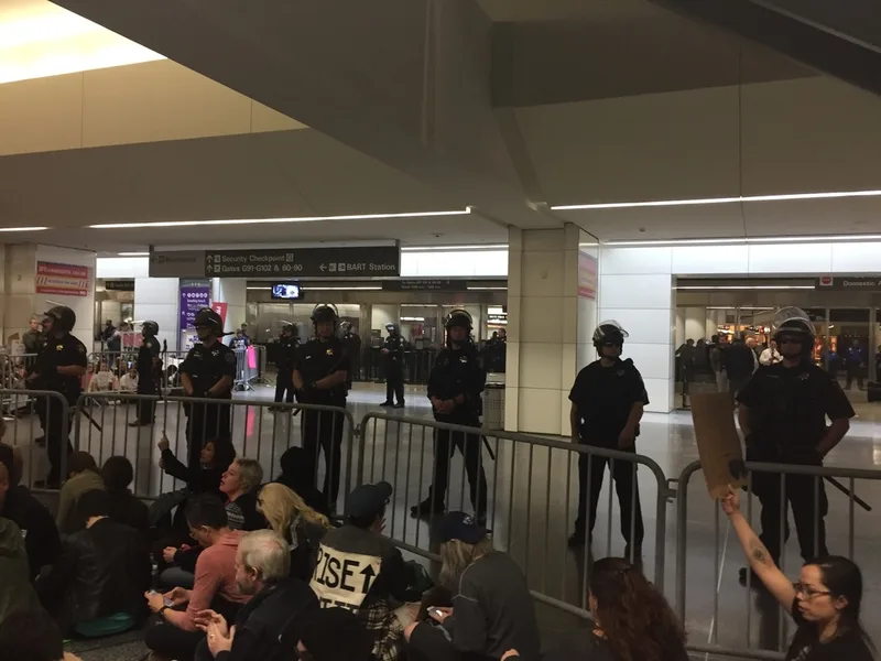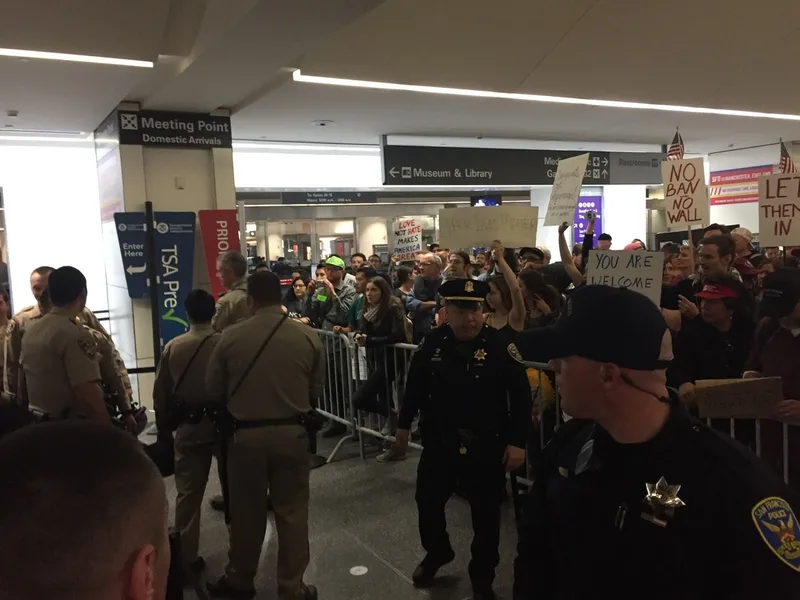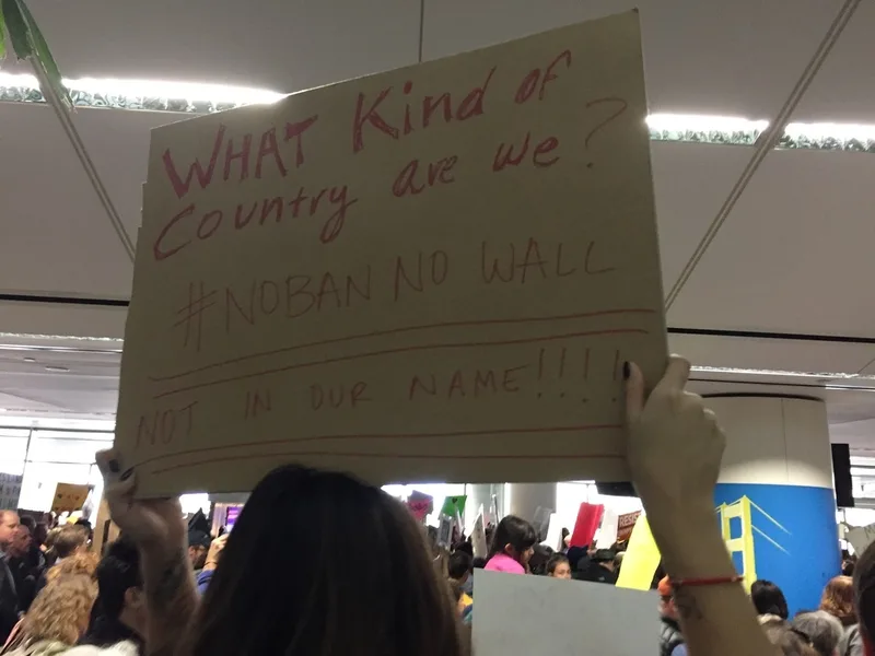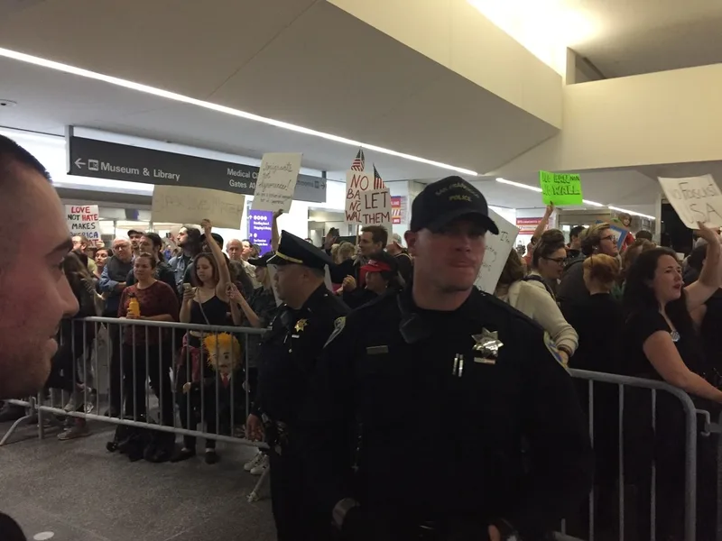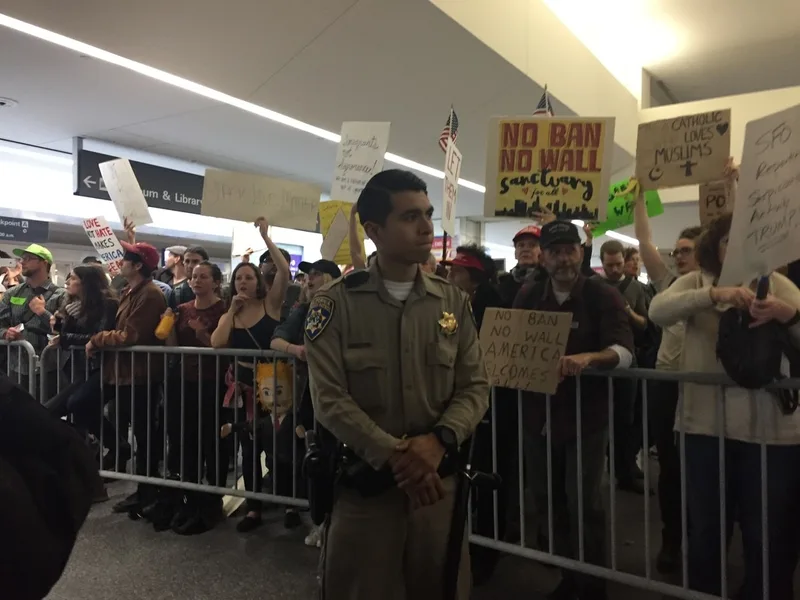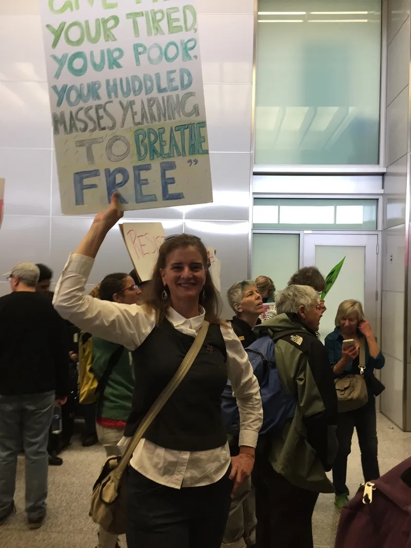 I took these photos at the San Francisco Airport protest on January 29, 2017. Like protests at airports across the country, this one was peaceful, and spontaneous. A heartfelt response from thousands of people who were offended and distressed at the new president’s ban on travelers for seven mostly Muslim nations.