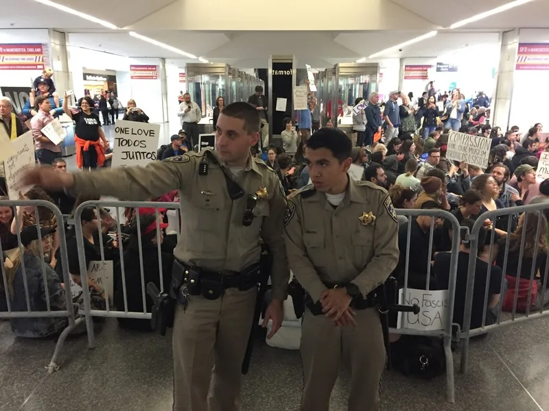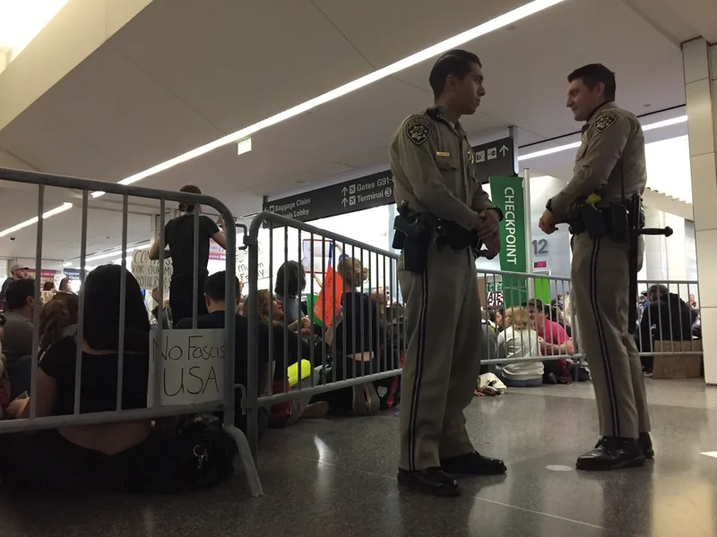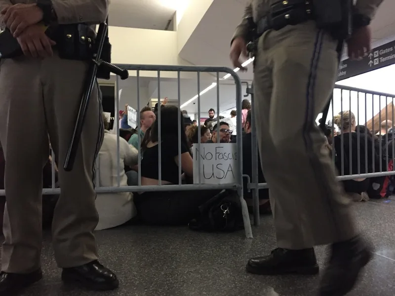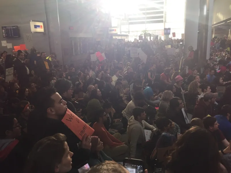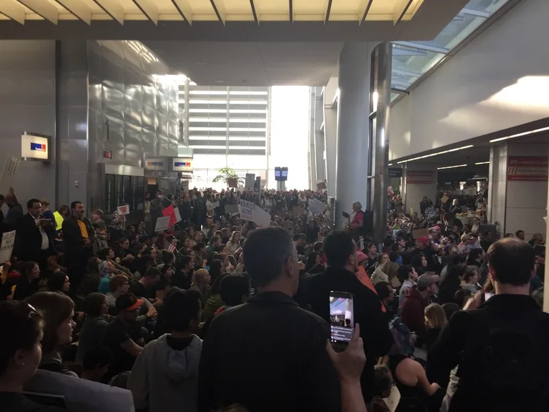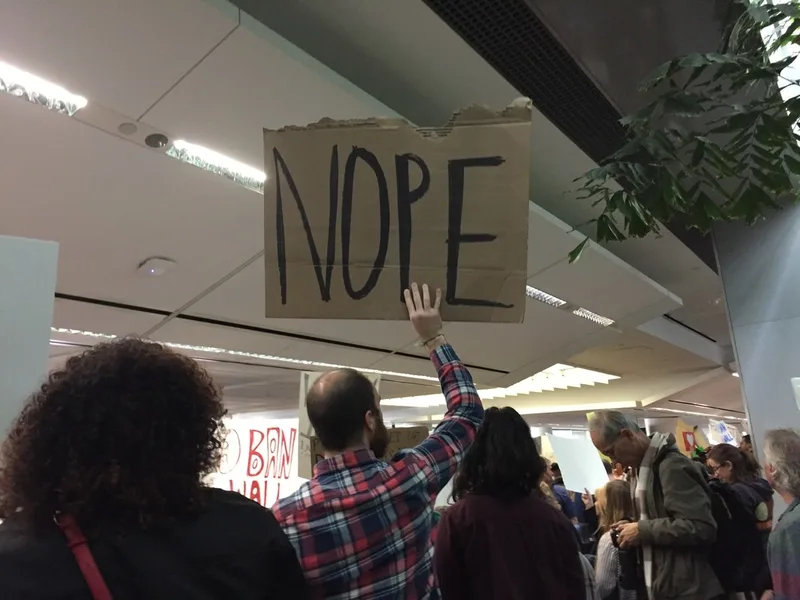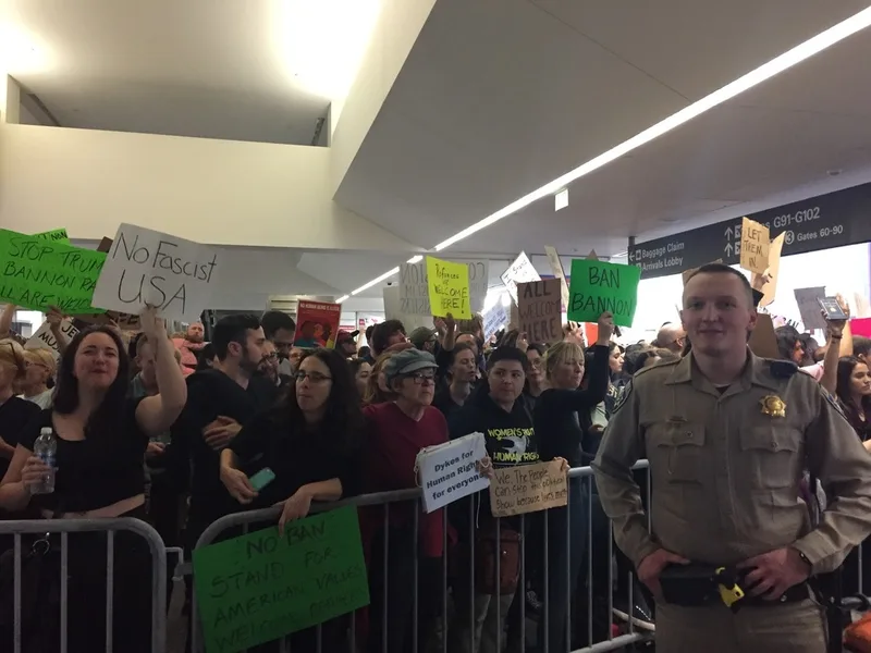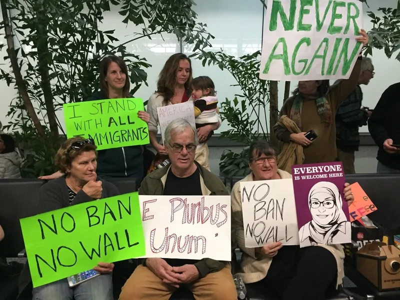 I took these photos at the San Francisco Airport protest on January 29, 2017. Like protests at airports across the country, this one was peaceful, and spontaneous. A heartfelt response from thousands of people who were offended and distressed at the new president’s ban on travelers for seven mostly Muslim nations.